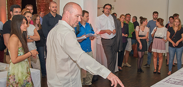 Die Klassikstadt inszeniert die Stilgeschichte des Automobilbaus. Sie verfügt über Ausstellungs-, Büro-, Event- und Tagungsräume sowie über Werkstätten und eine Gastronomie. Sie vereint damit vielfältige Nutzungen rund um das sprichwörtlich „liebste Kind“ der Deutschen, das Automobil. „Wir wollten dem Nachwuchs die Möglichkeit bieten, an einer praxisnahen Bauaufgabe mitzuwirken. Über die vielfältigen Konzepte und die Qualität der Entwürfe freuen wir uns sehr. Sie geben ganz neue Impulse, wie die Klassikstadt konkret wachsen kann“, so Marco Wimmer und Carsten R. Kulbe bei der Begrüßung der rund 50 Gäste, die zu der Preisverleihung um 11.30 Uhr samt anschließender Feier kamen. Für den Wettbewerb standen 2.500 Euro Preisgeld zur Verfügung. Weitere 500 Euro steuerte der BDB Frankfurt Rhein Main e.V. bei. Die Ausstellung weiterer eingereichter Arbeiten ist dann noch für die Öffentlichkeit am Mittwoch von 13.00 bis 18.00 Uhr sowie am Donnerstag und Freitag, den 23. und 24. Juli 2015, jeweils von 10.00 bis 18.00 Uhr in der Klassikstadt zu sehen: Orber Strasse 4a, 60386 Frankfurt am Main.