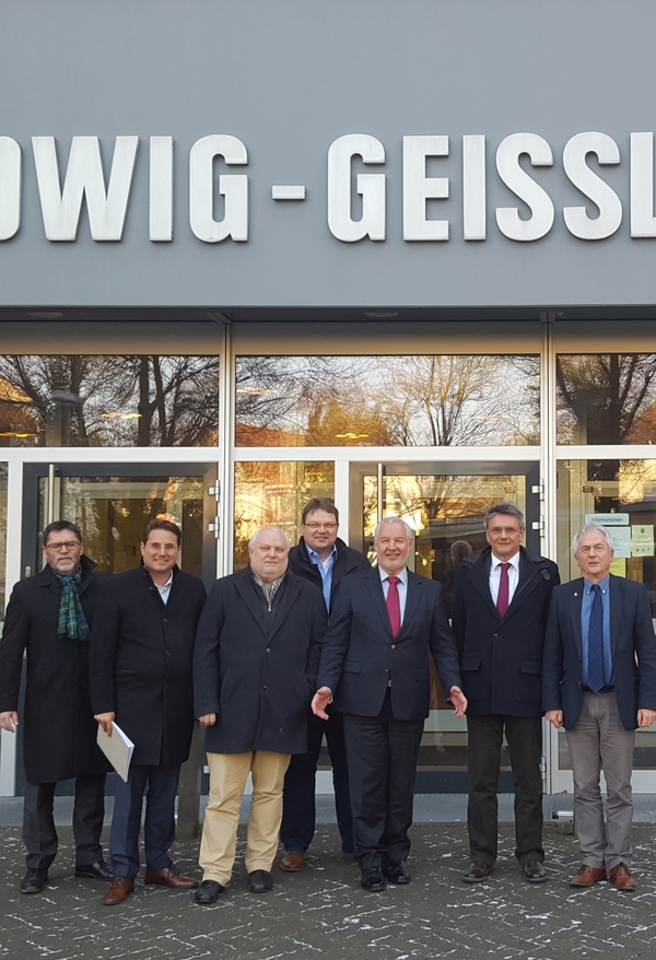 Auf Einladung von Erich Schleßmann, kommissarischer Amtsleiter des Staatlichen Schulamtes für den Main-Kinzig-Kreis, waren Axel Hilfenhaus Geschäftsführer der Kreishandwerkerschaft Hanau, sowie Andreas Ostermann, Dr. h.c. Thomas M. Reimann und Tobias Rösinger für den BDB Frankfurt Rhein Main (BDB) zu Gast bei der Schulleiter/innen-Dienstbesprechung am 27.02.2018 in der Ludwig-Geißler-Schule Hanau. Die Gelegenheit wurde genutzt, um den BDB vorzustellen und über Chancen und Perspektiven für Nachwuchs im Handwerk, vor allem im Bauhaupt- und Baunebengewerbe zu informieren.