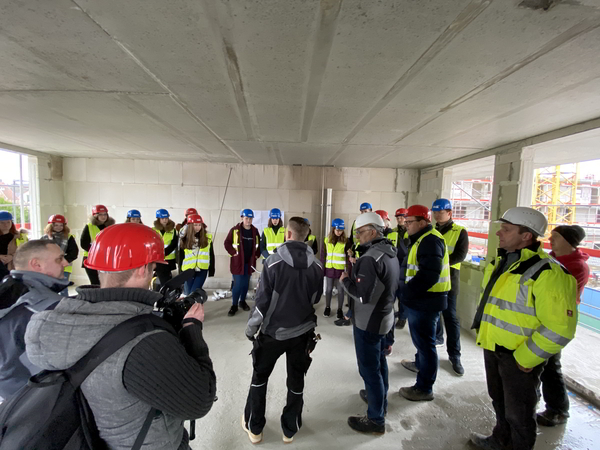 Vor Ort stellte man fest, dass das Projekt weit fortgeschritten ist, die nächsten Gewerke anstehen. Bislang haben sich fast 100 Schüler und Schülerinnen aus Hanau und Bad Vilbel über die Ausbildung als Betonbauer, Maurer, Rohrleitungsbauer, Tiefbauer, Einzelhandels- oder Großhandelskaufmann und die damit verbundenen Chancen und Perspektiven innerhalb der letzten 3 Monate informieren können. Mit Beginn der Ausbauphase im Objekt wird, im Rahmen neuer Gewerke, somit auch über neue Ausbildungsberufe informiert. Das mit dem Ausbau beauftragte Unternehmen E+CO O hat über Ausbildungsmöglichkeiten im Bereich der Dachdecker, sowie des Gewerks Heizung + Sanitär informiert. Fa. Lauer Industrieservice bildet Mitarbeiter für die verschiedensten Bereiche der technischen Gebäudeausrüstung selbst aus.